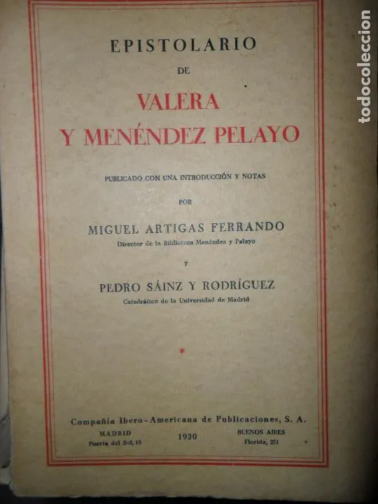 Epistolario de Valera y Menéndez Pelayo, ed. Ibero-Americana.