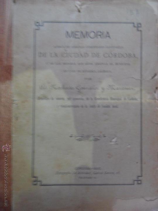 Memoria acerca de algunas condiciones sanitarias de la ciudad de Córdoba, Córdoba, 1890