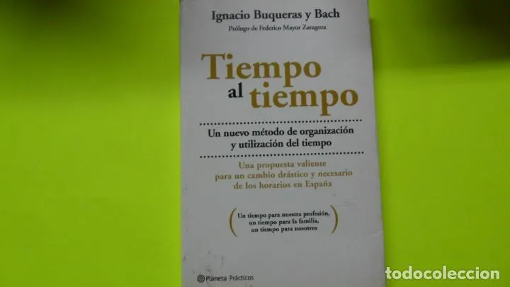 Tiempo al tiempo, de Ignacio Buqueras y Bach (ed. Planeta, 2006, tapa dura, 256 pp., ISBN 9788408065609), propone una racionalización radical de los horarios españoles para alinearse con Europa, criticando el modelo latino de comidas largas, trabajo hasta tarde y conciliación familiar deficiente que genera baja productividad y estrés crónico.